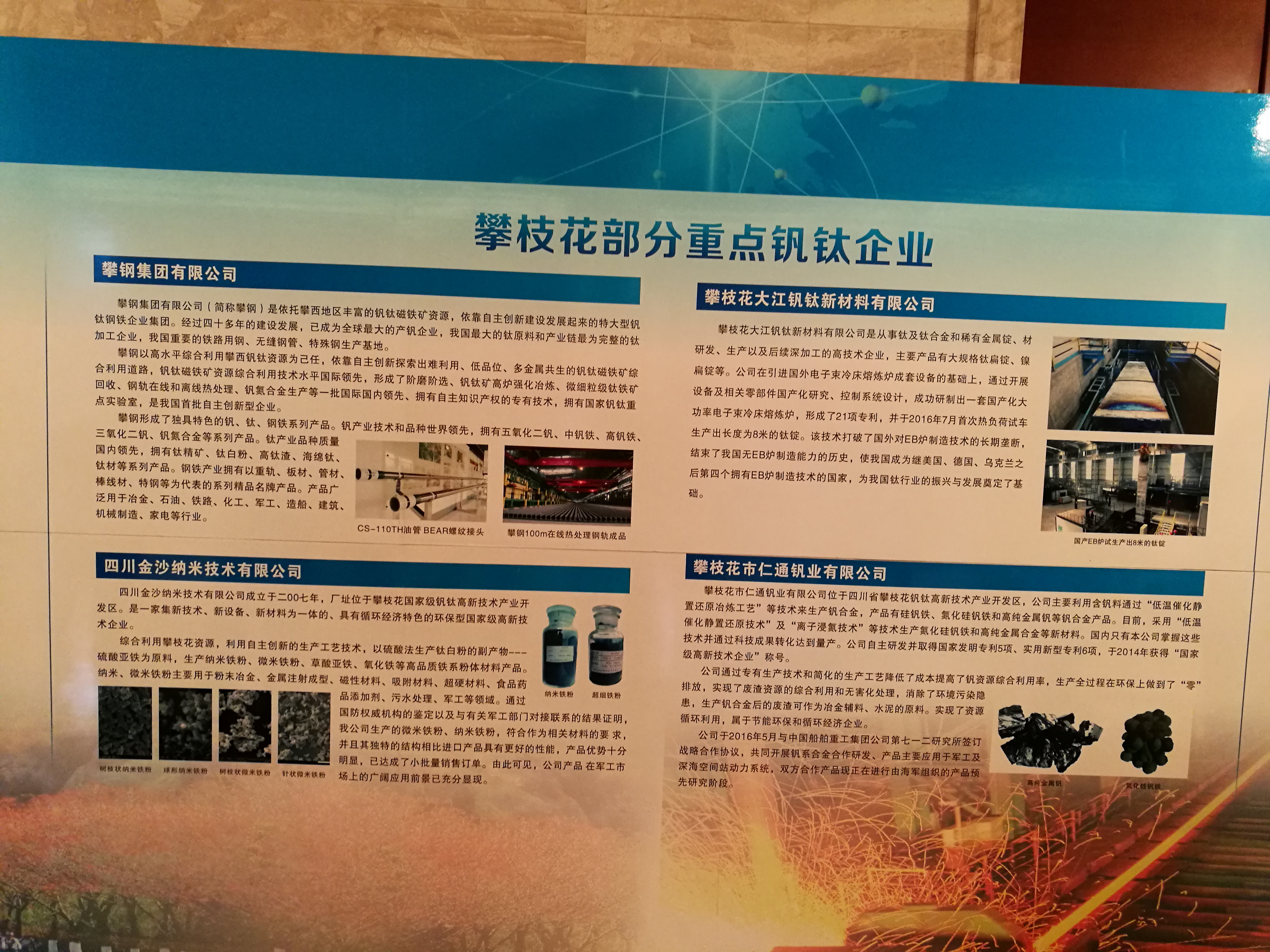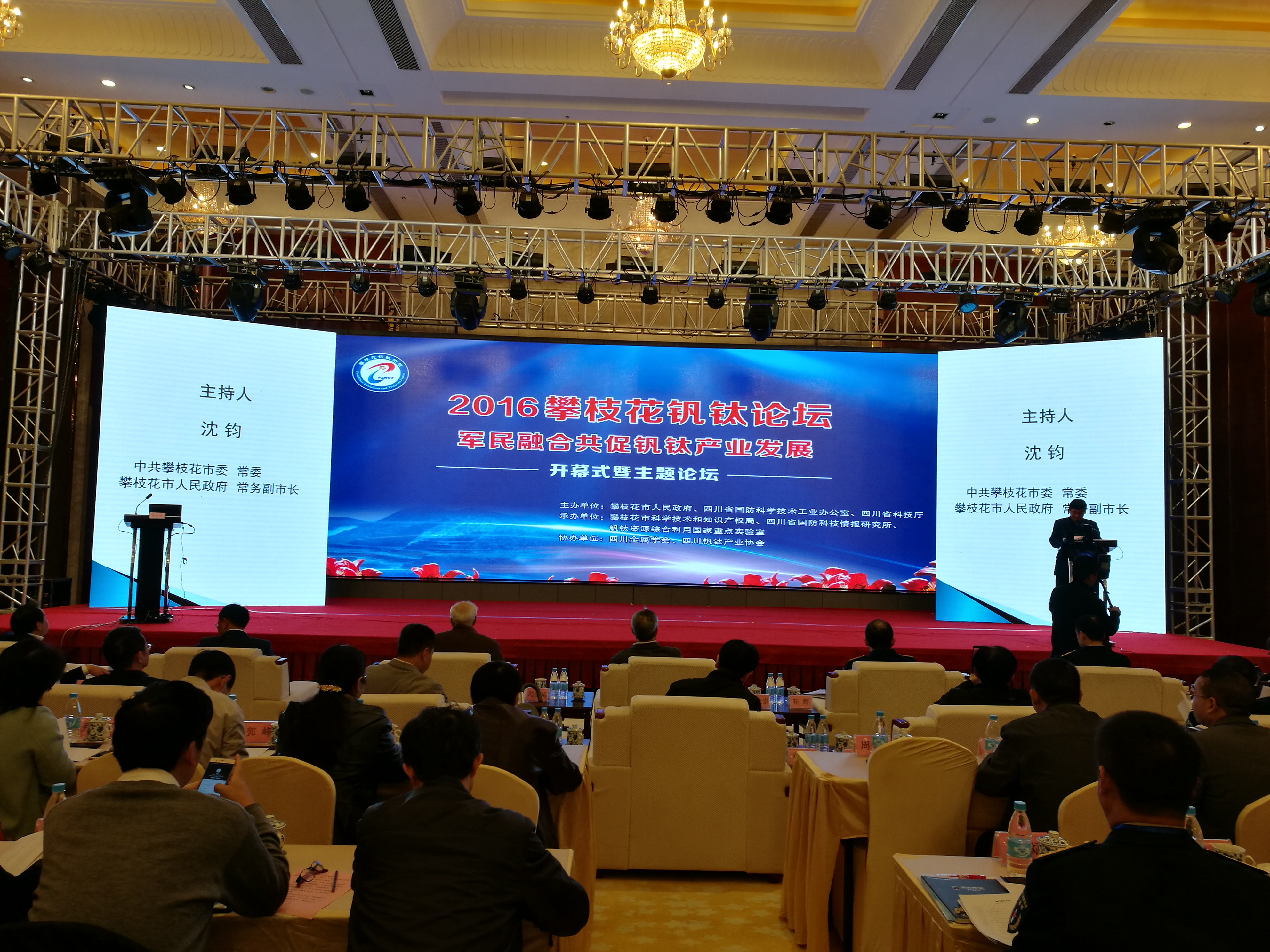 为落实国家军民融合发展战略,推动钒钛产业技术创新,实现产、学、研、用的有机结合以及国防科技成果的有效转化,加速攀枝花经济发展,打造军民融合的钒钛产业基地,攀枝花市人民政府、四川省国防科学技术工业办公室、四川省科技厅于11 月25 日-27日在四川攀枝花红格假日酒店举行了“2016 攀枝花钒钛论坛”。