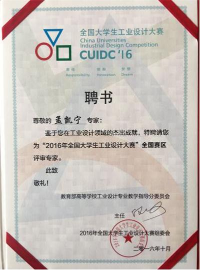 11月29日,2016全国大学生工业设计大赛在广东东莞揭晓。西华大学作为四川省高校赛区负责单位,因组织工作优秀,被全国组委会评选为优秀组织奖。我校艺术学院孟凯宁教授被教育部高等学校工业设计专业教学指导分委员会聘请为2016年全国大学生工业设计大赛评审专家,艺术学院王蓉副教授参加了颁奖典礼。