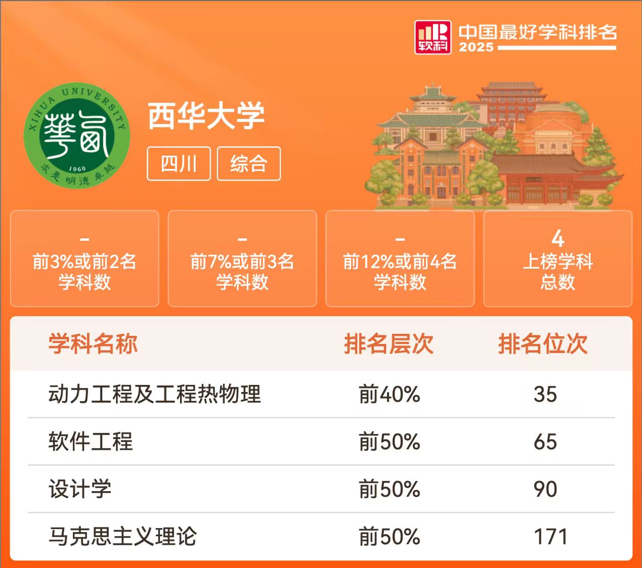 10月15日,高等教育评价专业机构软科正式发布“2025软科中国最好学科排名”。我校动力工程及工程热物理、马克思主义理论、软件工程、设计学4个学科上榜。其中,软件工程和设计学学科首次上榜,学科上榜数量创新高。