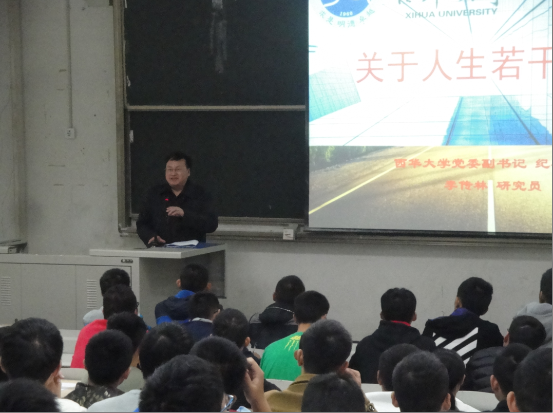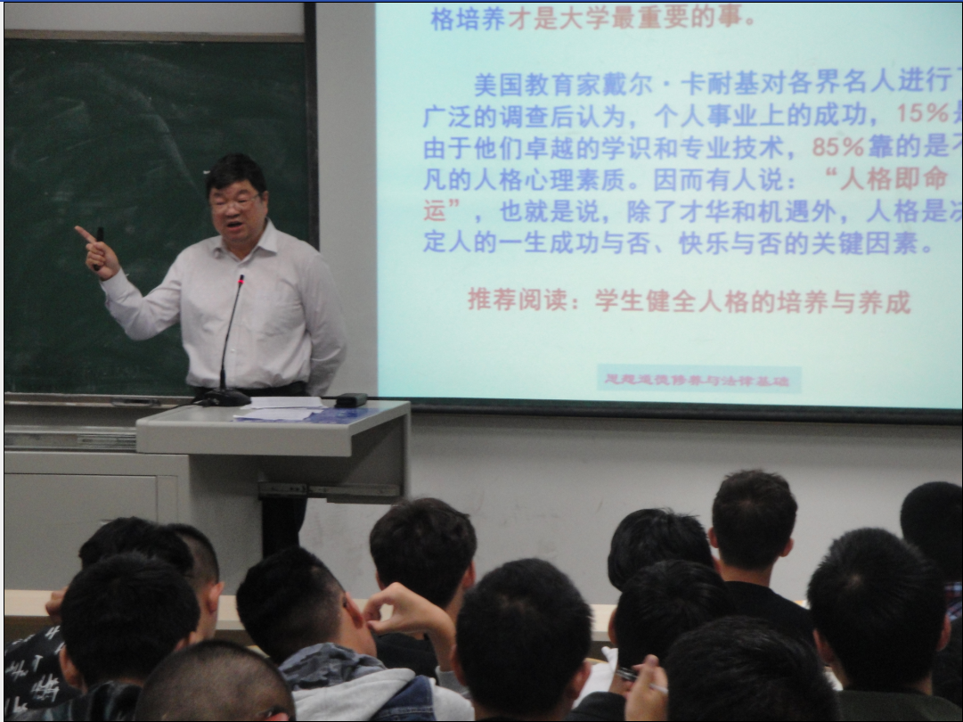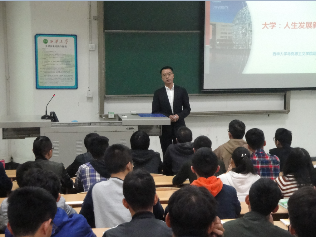 依照教育部高等学校马克思主义学院建设标准中选聘高水平专家担任特聘教授,统筹好地方党政领导干部、企事业单位负责人、社科理论界专家、各行业先进模范以及高校党委书记校长、院(系)党政负责人、名师大家和专业课骨干教师、日常思想政治教育骨干等八支队伍上思想政治理论课讲台的要求,马克思主义学院近期邀请了成都高新区合作街道党工委副书记王百春、成都市烟草管理局副局长尹健康、校党委副书记李传林、教育部食品科学与工程类教学指导委员会委员车振明教授、四川省五一劳动奖章获得者唐丹、马克思主义学院副院长郑小明、社科理论教授封德平、继续教育学院党委副书记陈雁、中青年博士陈正芬等,为2017级新生开讲《思想道德修养与法律基础》第一堂课。