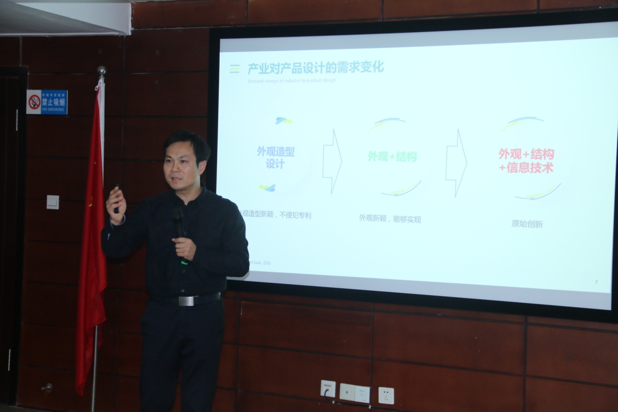 在学术沙龙活动上,罗仕鉴教授以“Design+,工业设计新发展与学科融合”为主题,从市场驱动的教育改革、以科技设计为核心的整合创新、多学科交叉整合创新的设计研究、工业设计与智能技术四个方面作了分享。