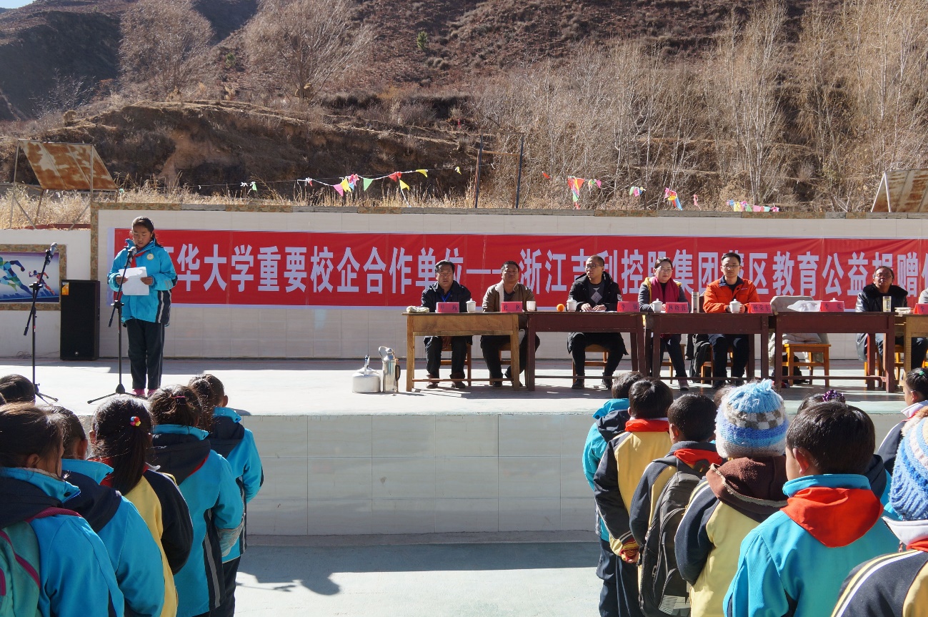 教育局副局长林晓蓉作了讲话。她说,西华大学对口精准帮扶巴塘县以来,学校领导多次深入藏区巴塘进行实地考察和现场调研,对巴塘的精准扶贫、脱贫攻坚工作把脉问诊,在巴塘干部培训、文化帮扶、引进社会资源等方面为巴塘的精准扶贫精准脱贫工作做出了贡献。通过学校搭建的平台,引进了众多社会各界爱心企业和爱心人士参与巴塘的脱贫攻坚工作,特别是对巴塘县的教育给予了极大支持。以浙江吉利控股集团为代表的爱心企业深入藏区,来到巴塘,走进中咱小学进行教育公益捐赠,充分体现了集团对巴塘教育、对中咱小学的高度关注和大力支持。她希望接受捐赠的同学努力学习,用自己的实际行动回报社会,将这份爱传递下去。