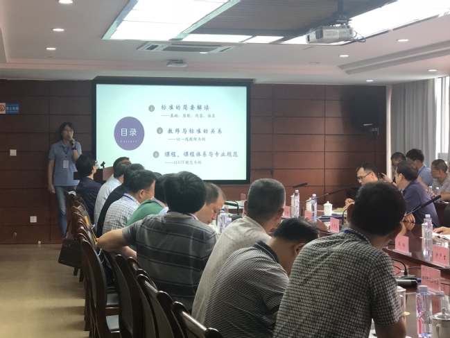 四川大学计算机学院(软件学院)朱敏教授作了《如何理解与实施教学质量国家标准》专题报告,她结合教育部计算机类教学指导委员会对《普通高等学校本科专业类教学质量国家标准》的研究成果,围绕标准的制定基础和原则、基本内容和知识体系等,对标准进行解读。同时从具体教学实施的角度,分析一线教师与质量标准的关系。中国教育创新校企联盟副秘书长沙严君女士作了《企业创新训练营——合产教融合培养新工科人才》专题报告,她表示新工科发展迅速,在教育界和产业界引起强烈反响,而产教融合、校企合作是实现新工科人才培养的必要途径。企业创新训练营通过实例分析、实境训练、实现检验,将产业要素落实到实际教学的具体环节。