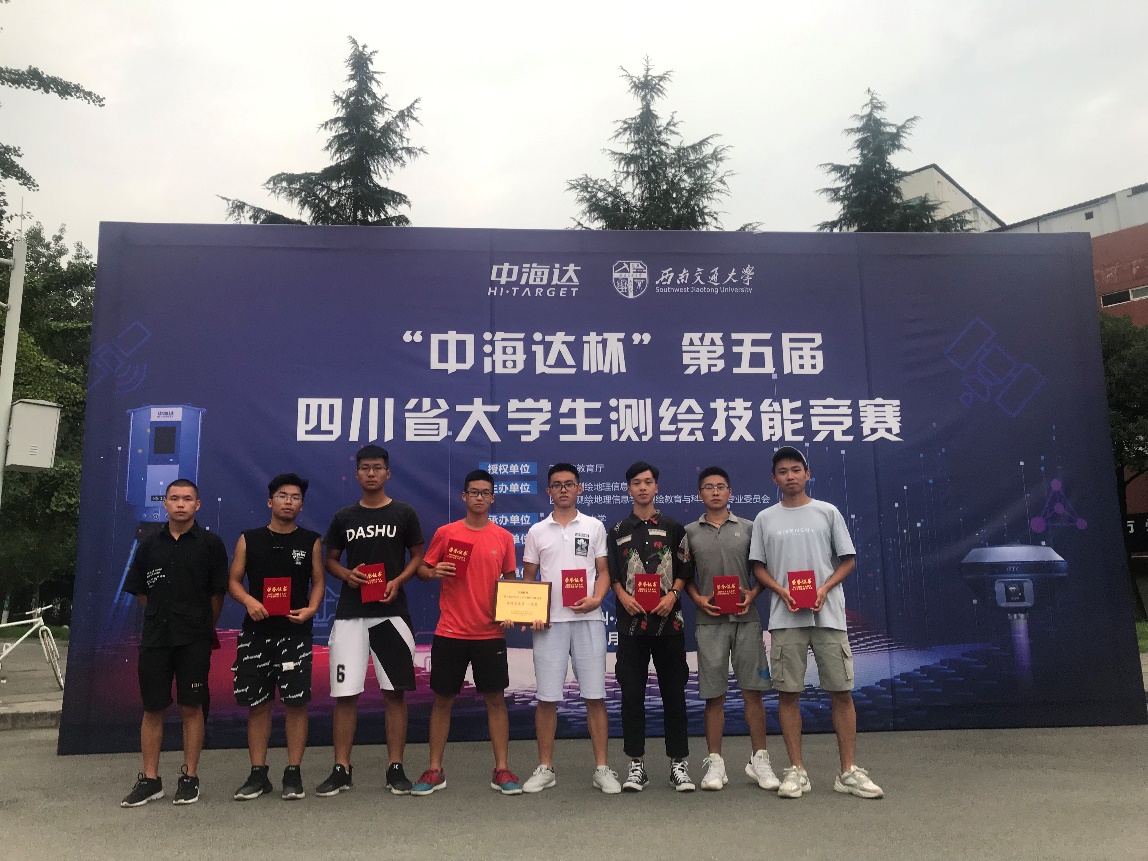 第五届“中海达杯”四川省大学生测绘技能竞赛由四川省教育厅主办,西南交通大学、四川省测绘地理信息学会、四川省测绘地理信息学会教育与科普委员会、广州中海达卫星导航技术股份有限公司联合举办。自今年5月以来,土木建筑与环境学院广泛动员,同学们积极参与选拔,在经过院初赛、复赛后,确定了两支队伍共计12名队员代表西华大学参加本次大学生测绘技能竞赛。经过两天激烈角逐,我校两支参赛队伍在李章树老师和刘蒙蒙老师的指导下,一支队伍参加四个单项全部获得一等奖,另一支队伍参加四个单项获得两个二等奖及两个三等奖。同时,西华大学荣获团体总成绩一等奖。参赛的八个项目全部获奖!