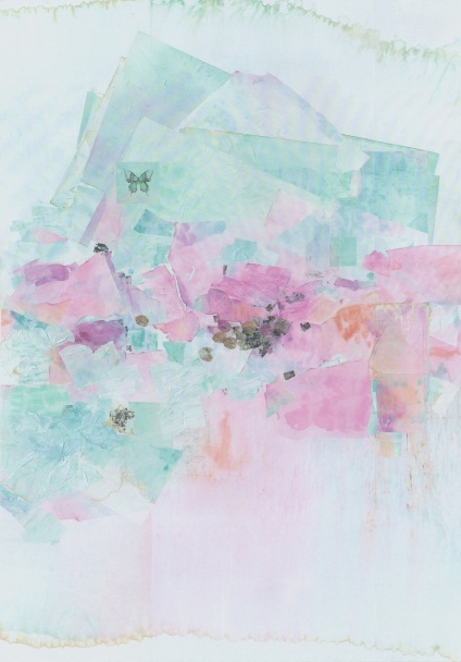综合材料绘画作品《晴春蝶戏图》