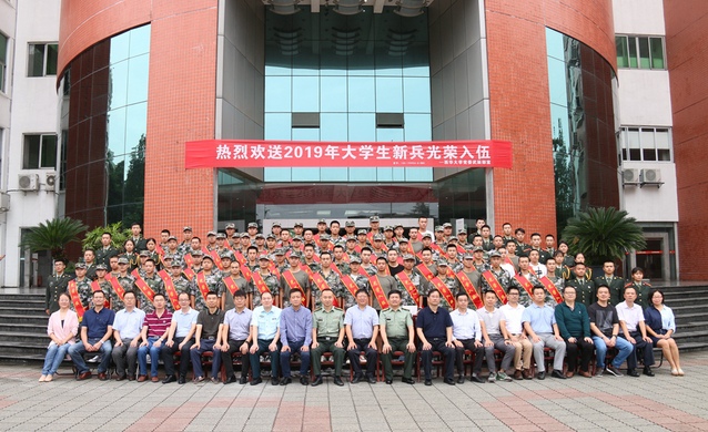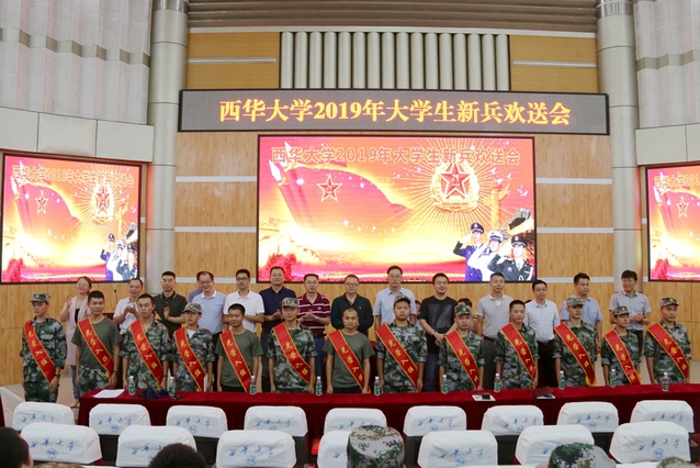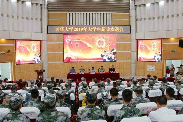 听吧新征程号角吹响,强军目标召唤在前方,国要强我们就要担当,战旗上写满铁血荣光。9月9日,我校召开2019年大学生新兵欢送会,为即将奔赴军营的大学生新兵送行。副校长刘小兵,金牛区人武部政委张胜,党委武装部、学生工作部、相关学院负责人、73名大学生新兵及部分新兵家长参加了此次欢送大会。党委武装部副部长钟瀚主持会议。