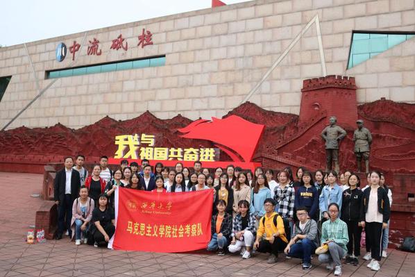 西华大学长期开展思政课实践教学研究,创新实施了“面-点-面”实践教学,覆盖全体在校学生,实现了课堂教学与实践教学的有机结合。目前,依托易班平台,学校正以慕课教学方式为基础将线上实践教学活动与线下教师统一讲授有机结合开展实践教学,形成了“课堂+实践+网络”的思政课教育教学新格局。本次实践教学由必做板块和选做板块两大板块构成。必做板块以“我和我的祖国”为主题,围绕新中国成立70周年这一盛大节日,以视频方式展示祖国70周年的发展变化以及取得的伟大成就;选做板块从“中国近现代重要人物或重大事件述评”“马克思主义经典阅读”“社会调查”3个模块中任选1个模块并提交成果。本次赴建川博物馆考察就是围绕“我和我的祖国”开展的主题实践活动。