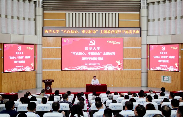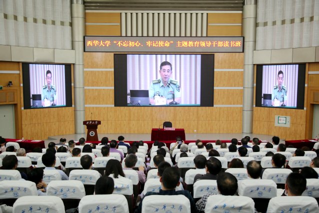 9月27日,我校在四教报告厅举办“不忘初心、牢记使命”主题教育领导干部读书班第二场辅导报告会,集中观看全省第二批主题教育单位党员领导干部集中学习研讨班的有关内容,开展形势政策教育。国防大学国际战略教研室主任、博士生导师马刚教授作题为《突破战略围堵——中国如何应对美国的挑战》的辅导报告。校党委副书记王小林,学校副处级及以上党员领导干部参会。报告会由王小林主持。