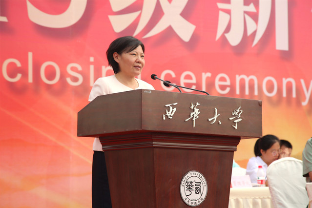 校党委书记边慧敏代表学校向中国人民武装警察部队四川省总队成都支队、各位教官表示衷心的感谢,向参加军训的全体2019级新同学表示亲切的慰问,向受表彰的军训先进集体和优秀个人表示热烈的祝贺。边书记表示,希望同学们今后能继续保持军训中不畏艰难、刻苦奋斗的战斗意志,在美丽的西华校园努力学习,求学问之是、求真理之是;继续秉持尊师敬长、严守纪律的德行素养,在滔滔的沱江河畔感悟人生,明大学之道、明为人之德;能继续坚持军训中团结协作、进取拼搏的精神品质,志存高远,与同学一起追寻个人的卓越理想,与学校一同追寻发展的卓越目标,与祖国一道追寻我们中华民族共同的卓越梦想。