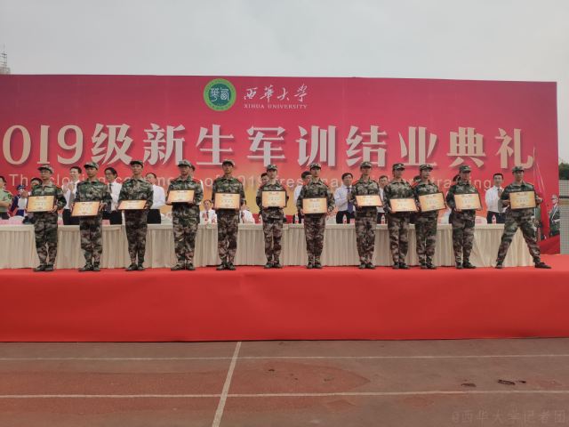 汇报表演结束后,校党委副书记王小林宣读了《关于表彰2019级学生军训优秀连队、优秀学员的决定》。经军训团推荐上报,学校军训工作领导小组研究,决定对男生一连等14个连队和477名军训优秀学员予以表彰。王小林表示,希望参训同学继续保持和发扬不怕苦、不怕累的拼搏精神,以饱满的热情、昂扬的斗志投入到今后的学习和生活中。主席台领导为优秀连队、优秀学员代表颁奖。