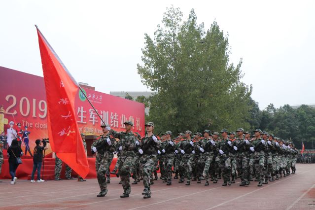 最后,军训结业典礼在《中国人民解放军军歌》的歌声中落下了帷幕。