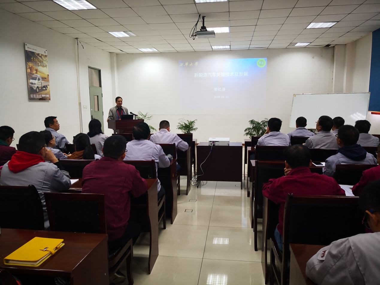 在论坛举办前夕还开展了专家下基层活动,23位专家于10月15日赴绵阳市重点产业相关企事业单位开展智力服务活动。汽车与交通学院院长彭忆强深入到绵阳经信局举行的“不忘初心、牢记使命”主题教育系列活动,为相关人员讲解“汽车产业发展现状”;到绵阳华瑞汽车为技术和管理人员讲解“新能源及智能汽车关键技术”,并与技术人员进行互动交流,建立了校企合作的渠道,受到了省人社厅、地方政府及帮扶单位的一致好评。