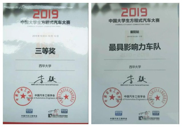10月8日一12日,西华大学燃油方程式车队在我校汽车与交通学院田国英老师的带领下,前往湖北襄阳梦想方程式赛车场参加2019中国大学生方程式汽车大赛。今年是该项赛事举办的第十年,汇聚了来自国内六十多所高校的燃油方程式赛车。经过一周的鏖战,西华大学燃油方程式车队取得总成绩全国三等奖,并荣获最具影响力车队和连续十年参赛车队奖。
