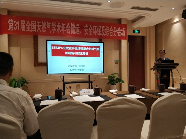 我校作为四川省石油学会副理事长单位,受邀出席大会。会上,四川省石油学会副秘书长、我校汽车与交通学院教授、科技园总经理何太碧作了题为“35MPa玄武岩纤维增强复合材料气瓶的制备与数值分析”主题发言,从超高压复合材料气瓶的材料选择、工艺优化、样品试制、试验研究、数值分析等方面向全国同行展示了我校在天然气储运设备研究中取得的最新进展。该成果得到与会专家高度认可,专家认为采取玄武岩纤维增强材料,提高车载CNG气瓶储运压力至35MPa,既增加了天然气汽车续驶里程,又节约了经济成本,能够提高天然气汽车产业的市场竞争力,强化天然气在交通运输能源结构中的主体地位。