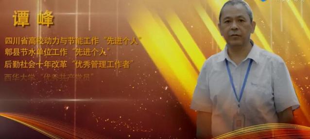 今年57岁的西华大学后勤服务总公司水电管理服务中心主任、公司党委教工第二支部书记谭峰,信念坚定、兢兢业业、清正廉洁。谭峰从水电维修工做起,再到水电管理,丰富的工作经验让他成为了学校水电后勤领域的“老大哥”,被大家称为学校水电管网的“活地图”。他要求自己必须做到率先垂范,从接电话到上门维修,从日常巡查到例行检查,他都一丝不苟。在他的带领下,西华大学水电中心多次被上级部门评为“水电管理先进单位”“高校后勤节能管理先进单位”,他个人也多次获得四川省高校动力与节能工作“先进个人”、郫县节水单位工作“先进个人”、后勤社会化十年改革“优秀管理工作者”、 西华大学“优秀共产党员”及西华大学唐立新后勤服务杰出员工奖等称号。