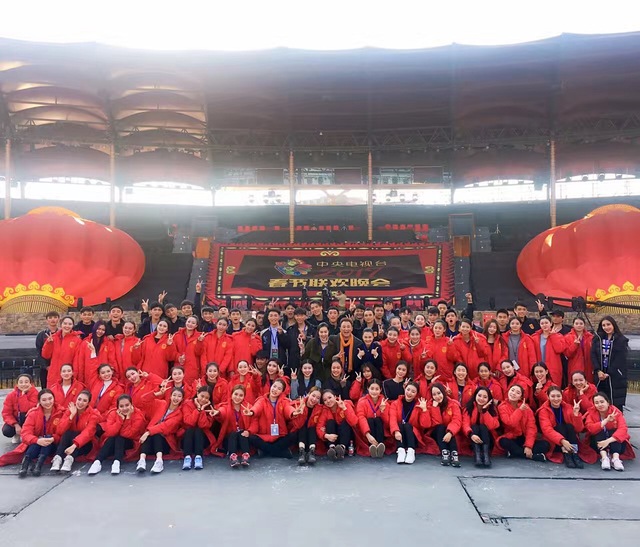 我校受邀参加春晚演出的师生在春晚现场合影留念