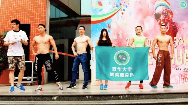 开幕式上,主持人对本次活动的背景、宗旨、流程和注意事项等作了介绍。据介绍,彩虹跑不仅仅只是一个简单的娱乐文体活动,它更是一个传播正能量、引导同学们从娱乐至上到思考人生、体味生活真谛的活动。同时,这也是响应教育部的“三走”要号召,鼓励同学们走下网络、走出宿舍、走向操场的落地活动。按照赛制规定,完赛之后,参赛队员要将自己的比赛照片发至易班动态,每组前40名完赛的同学即可获得奖牌一枚,还有由校易班学生工作站提供的精美小礼品。 西华大学健美操队的运动员在开幕式上为同学们带来了形体展示,参赛选手一边观赏,一边做着热身准备。