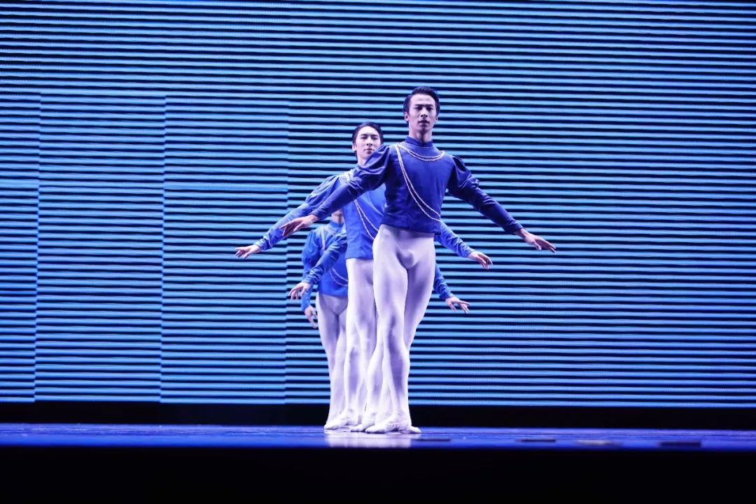 在经典舞剧片段和芭蕾作品表演环节中,《古典男子四人舞》展现了古典芭蕾端庄典雅的风范,他们将芭蕾舞者静时傲然挺立、器宇轩昂,动时潇洒流畅、挥洒自如展现得淋漓尽致;