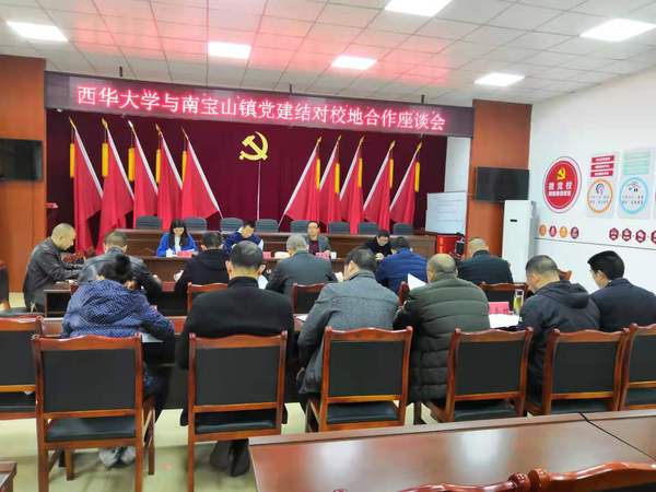 座谈会由南宝山镇镇长高旭东主持,镇党委书记魏素才,副书记、副镇长等镇相关领导及经发办负责人(我校06级工业设计专业校友)杨智涛参加了会议。高旭东镇长向我校介绍了南宝山镇是邛崃市幅员面积和林区面积最大的镇乡,是成都市重要的生态屏障,该镇生态本底坚实、文化底蕴深厚、特色产业众多,已发展了高山蓝莓、高山茶叶、猕猴桃、冷竹笋、藤椒、水产六大特色产业基地且发展态势良好。魏书记提到,南宝山镇在开发保护、民族文化、党建优势、商会支撑、产业发展等方面具有很多全省“唯一性”特质,但在技术、规划方面还存在短板,希望在乡村振兴战略下,能与我校进行党建结对、联建基地,借助我校的人才和智力资源,发挥其生态资源、民族资源、党建引领等优势,推动产业健康发展。