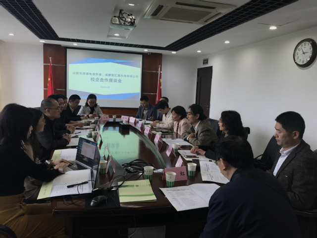 10月25日下午,成都市跨境电商协会秘书长姚正毅、成都世汇通科技有限公司董事长梅雪松一行来我校交流,学校在办公楼413会议室举行了成都市跨境电商协会、成都世汇通科技有限公司校企合作签约暨实训基地挂牌仪式。校党委书记边慧敏、副校长费凌出席签约和挂牌仪式,教务处、招生与就业处、四川西华科技园管理有限责任公司、创新创业学院、应用技术学院、经济学院相关负责人参加会议,会议由经济学院院长罗航主持。