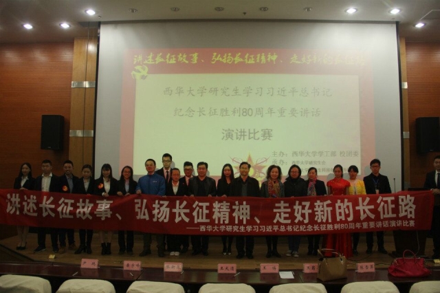 12月2日中午1点,为纪念中国工农红军长征胜利80周年,学习习近平总书记在纪念长征胜利80周年大会上重要讲话精神,由党委学工部和校团委共同主办、校研究生会和研究生科创团承办的“讲述长征故事、弘扬长征精神、走好新的长征路”主题演讲比赛在图书馆一楼报告厅顺利举行。经过激烈角逐,邹倩、王凤两位同学荣获本次比赛一等奖,潘叶蕾、王丹、甘麒三位同学获得二等奖,姜玥芝、陈青林、李晴、秦锐、汤滔五位同学获得三等奖。