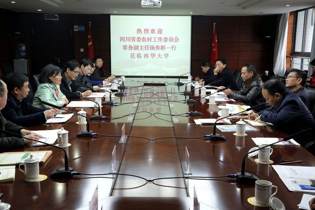 在听取学校相关情况介绍后,四川省委农村工作委员会常务副主任杨秀彬感慨地说:“这次来西华大学调研,真的是不虚此行,学校那么多院系专业都在研究与服务三农,也做出了巨大贡献,很不容易,令人感动。”他指出,推进农业现代化、建设农业强国,必须要更加重视科技对农业的贡献,突出抓好“两化”(农业装备现代化、从业人员专业化)和“四个体系”(中国特色现代农业生产体系、产业体系、经营体系和服务体系)建设。推进农业供给侧结构性改革,是“三农”领域的一场深刻变革,关系农业的长远发展。杨秀彬副主任就农业供给侧结构性改革的背景、内涵、主要举措等作了简要解读,对学校工作提出了指导和建议。他强调,要对学校现有的“三农”研究成果进行分类,明确哪些研究成果已经转化和应用,需要进一步推广和扩大,哪些研究成果需要企业来转化、制造和加工,哪些需要与企业一起共同研发,省农工委将为高校、政府、企业合作搭建更多的沟通交流平台,共同为推进农业供给侧结构性改革、推进农业现代化进程做出新的贡献。