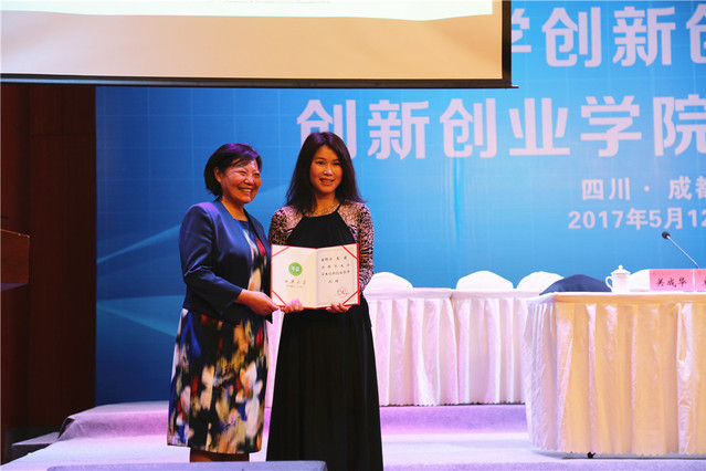 在揭牌仪式上,边慧敏书记、刘清友校长代表学校分别向君紫控股创始人、董事长秦君女士,美国资深孵化器专家Barbara Harley女士、首都科技发展战略研究院执行院长颜振军教授和成都天府新谷孵化器董事长王明新先生颁发了西华大学创新创业导师聘书。