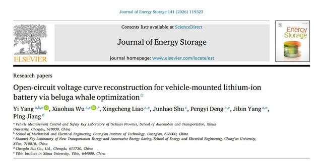 在动力电池状态估计领域,团队成功破解实车环境下锂电池开路电压(OCV)曲线难以精准重构的行业难题。2022级硕士杨毅以第一作者、武小花教授为通讯作者发表于《Journal of Energy Storage》(IF:9.8,中科院二区)的论文,创新性采用电动汽车动力电池包的多级恒流充电数据,通过 “分段处理-参数辨识-片段整合”的技术路线,实现了完整OCV曲线的高效重构。经实车数据与实验室数据双重验证,该方法重构精度高、适应性强,为动力电池状态估计、故障诊断提供了核心技术支撑,对提升新能源汽车电池管理系统可靠性具有重要意义。