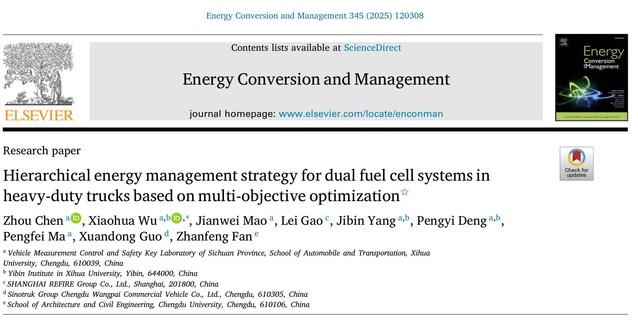 近日,汽车与交通学院新能源与智能车辆团队传来捷报,在燃料电池商用车能量管理、动力电池状态估计两大新能源汽车技术方向取得系列突破性进展。团队成果相继发表于《Energy Conversion and Management》《Energy》《Journal of Energy Storage》三本国际权威期刊,其中两篇为中科院一区Top期刊,一篇为中科院二区期刊,IF值均超9.4,相关研究为新能源汽车安全经济运行提供了创新性解决方案,充分彰显了我校在该领域的科研硬实力与国际学术影响力。