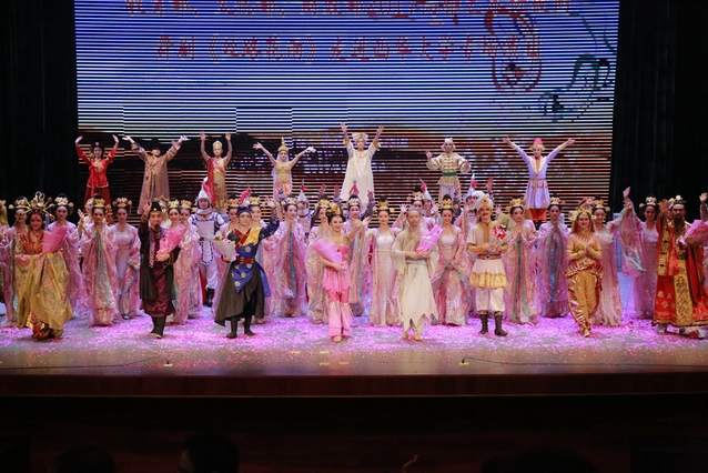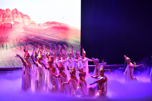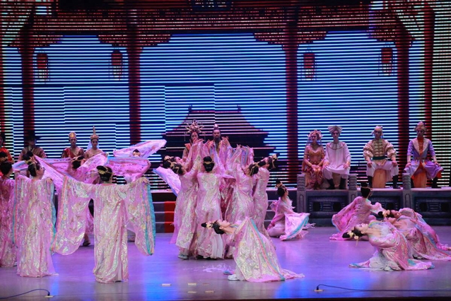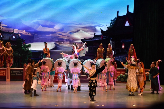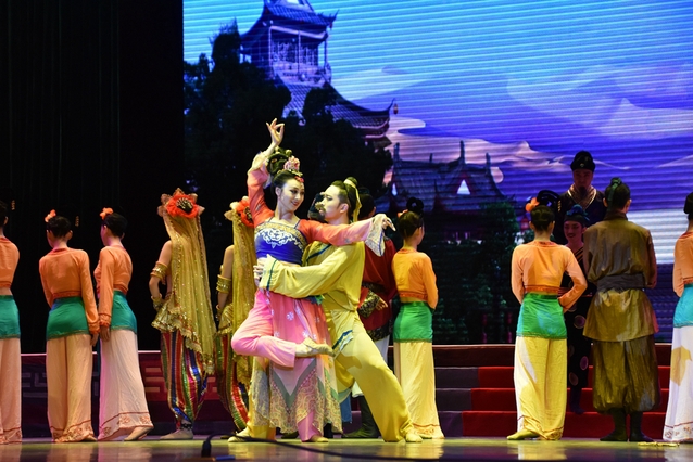 《丝路花雨》取材于举世闻名的丝绸之路和敦煌莫高窟壁画内容,博采各地民间歌舞之长而创作的大型民族舞剧,自1979年首演以来,至今已经延续了38年,曾先后到20多个国家和地区演出,被誉为“中国民族舞剧的典范”。
