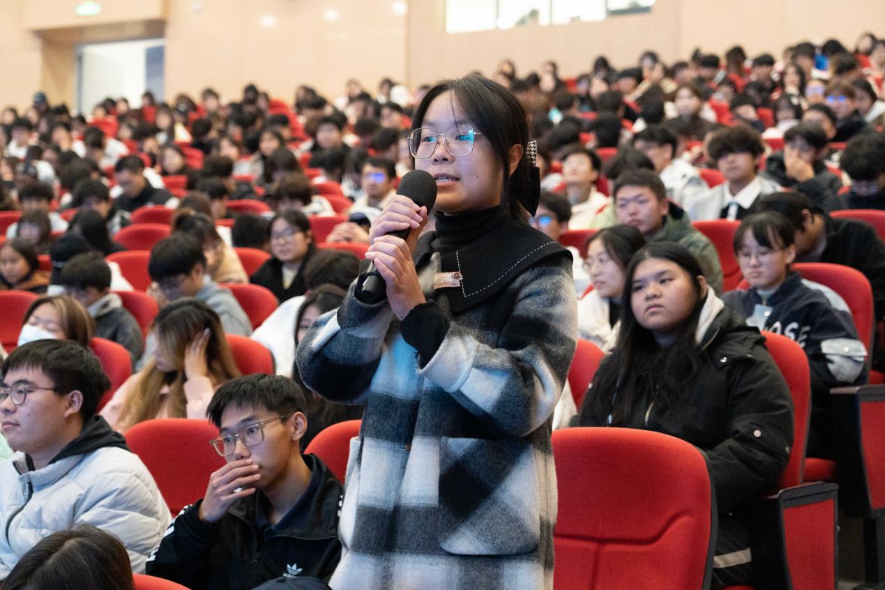 从校史脉络出发,靳敏回顾了学校65年来与国家工业化、农业现代化同向同行的发展历程,带领同学们走进“西华的过去与现在”。她谈到,学校传承“农机立校”的红色基因,主动适应强国建设、治蜀兴川战略需求,推动形成“工农融合、文理交叉”的协同发展新生态。近年来,学校在学科建设、师资队伍、人才培养、科学研究等方面取得了系列突破。宜宾校区立足国家战略,紧密对接四川省及宜宾市的经济发展需求,深化产教融合,推动协同创新,为区域发展注入了新动能。
