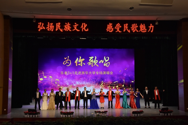 此次西华行,乐者3+1的艺术家们特意在网上搜索了《西华之歌》,并现场真情演唱,带来满满的感动。为了能和艺术家们更好地交流,我校音乐与舞蹈学院的师生也精心准备了《爱她 想她 祝福她》《有你作伴》两个曲目,让人耳目一新。两小时飞速流逝,演出在合唱《我爱你中国》的歌声中落下帷幕。