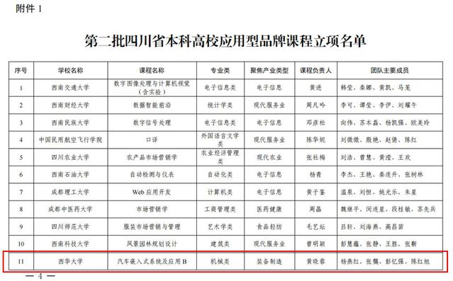 近日,四川省教育厅公布第二批四川省本科高校应用型品牌课程立项名单,我校汽车与交通学院申报的《汽车嵌入式系统及应用B》课程成功入选。