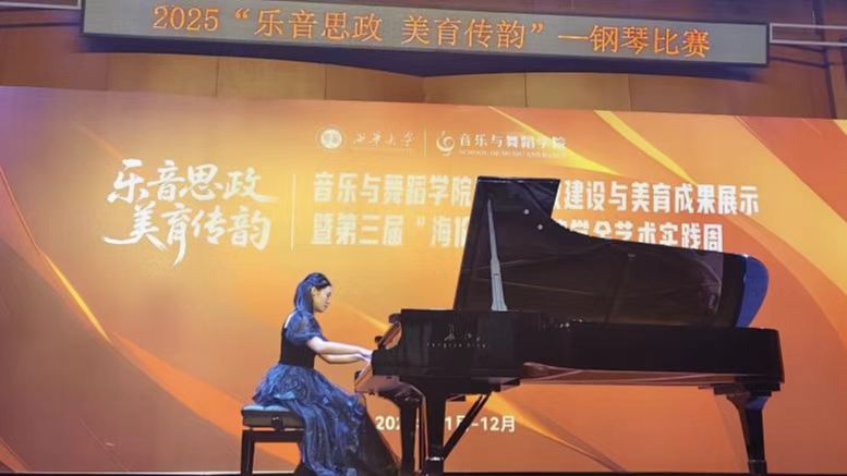 11月25日,学校艺术大楼内琴韵流淌、掌声阵阵。音乐与舞蹈学院“乐音思政,美育传韵”课程思政建设与美育成果展示艺术实践周之钢琴比赛在热烈氛围中如期举行。学院领导、专业教师与学生们齐聚一堂,共同沉浸在由黑白键构筑的音乐世界之中。活动不仅是技艺的展示,更是一次思想与艺术深度融合的生动实践。