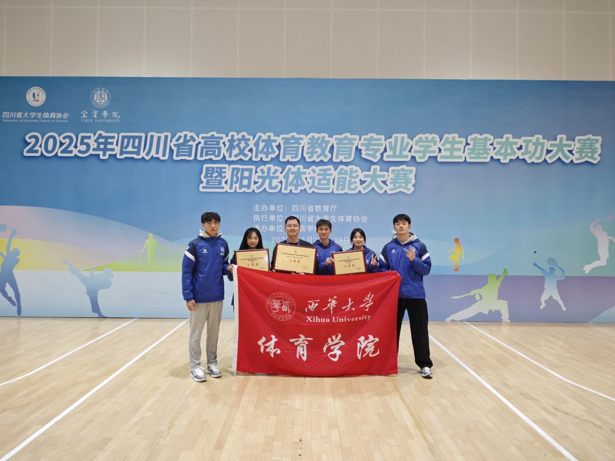 11月27日,2025年四川省高校体育教育专业学生基本功大赛暨阳光体适能大赛圆满落幕。本次大赛由四川省教育厅主办、四川省大学生体育协会执行、宜宾学院承办,汇聚全省26所高校的104名体育教育专业本科生同场竞技。我校代表队在比赛中发挥出色,取得优异成绩。