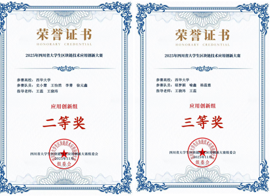 近日,2025年四川省大学生区块链技术应用创新大赛暨川渝大学生区块链技术应用创新大赛圆满落幕。经济学院学子表现优异,斩获应用创新组二等奖1项、三等奖1项,展现出扎实的专业能力与创新水平。