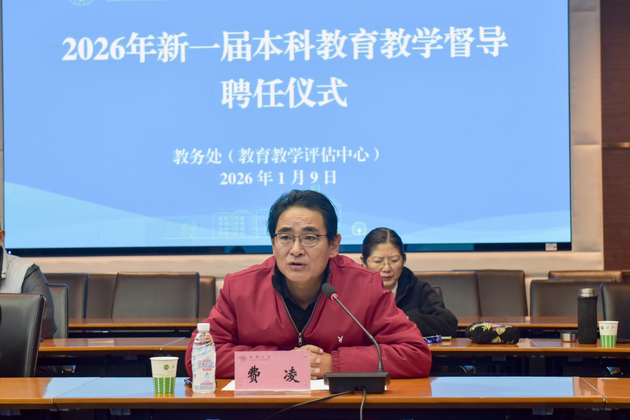 1月9日,学校在办公楼101会议室举行2026年新一届本科教育教学督导聘任仪式,进一步推动教育教学改革,提升人才培养质量。党委常委、副校长费凌出席会议并讲话,教务处处长彭必友主持,全体本科教学督导参加聘任仪式。