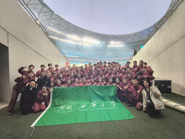 由于时间紧、任务重,整个排练过程仅有四天。面对挑战,从动作编排到细节打磨,从状态调整到精神鼓舞,全体参演同学严守纪律、刻苦训练、团结协作,师生同心,以严谨细致的态度打磨每一处细节,最终圆满完成一场精彩纷呈的表演,充分展现了西华学子扎实的专业素养与优良的学风作风。
