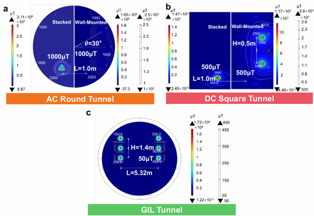隧道环境中交流电缆、直流电缆及GIL的磁场空间分布