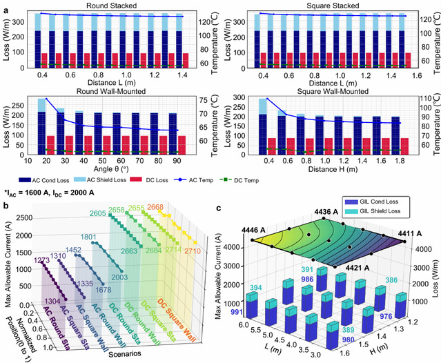 值得一提的是,研究团队创新性地提出了一套针对地下大容量输电隧道的有限元分析框架,实现了多物理场耦合(电磁、热力学、流体力学)与经济成本分析的深度融合。通过参数化调整导体间距,该框架可最大限度减少屏蔽层损耗并增强散热效果,在严格的温度限制范围内(电缆90°C、GIL 105°C)实现输电容量最大化,性能远超传统经验估算方法。在通风优化方面,团队采用二维负热源模型,精准匹配空气(40°C)与导体温度规范,可高效确定成本最优的竖井间距与风速组合。这一具备高度可扩展性的分析框架,能够为不同隧道环境与输电技术提供定制化设计指导,不仅为我国西南地区水电工程的开发提供了核心技术方案,更为全球山地可再生能源项目的建设提供了重要参考。