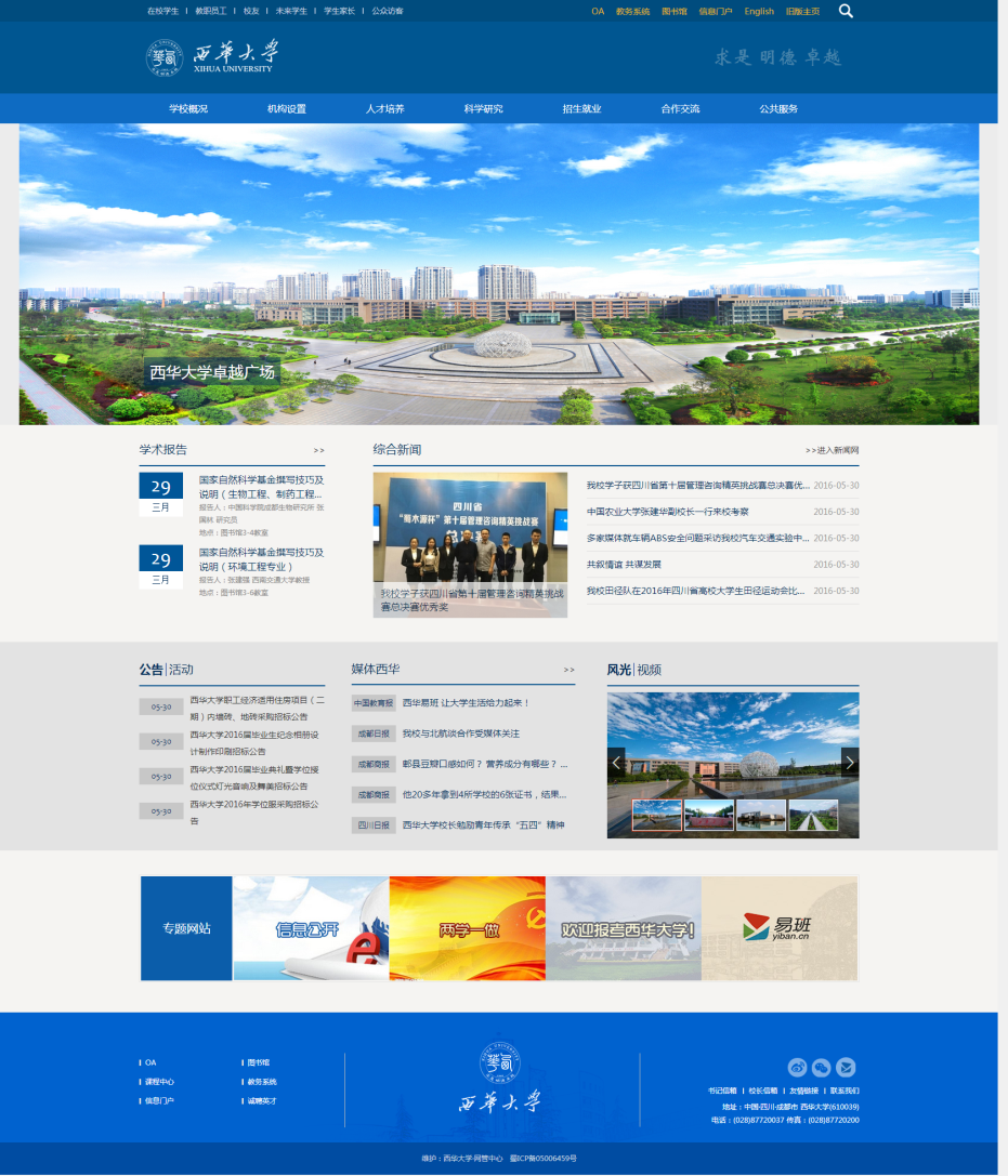 盛夏伊始,西华大学2016版校园网中文主页测试版(http://www.xhu.edu.cn)正式上线了。2016版校园网中文主页与旧版相比,在栏目设置、内容完善、页面制作、表现风格及后台操作等方面进行了全面提升。