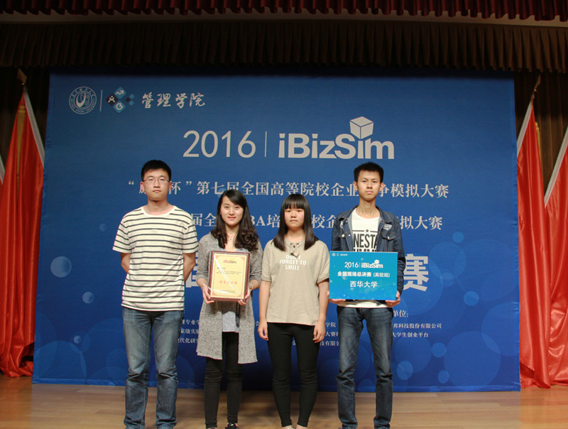 5月1日,第七届(2016)全国高等院校企业竞争模拟大赛暨第十五届全国MBA 培养院校企业竞争模拟大赛在北京联合大学落下帷幕,来自工商管理学院的方基云、夏小红和汽车与交通学院的钟捷镔三位同学组成西华大学代表队,在工商管理学院学科竞赛指导老师王映玥的带领下,与众多高校进行了激烈角逐,最终脱颖而出获得全国总决赛一等奖、优秀组织奖,这是我校在企业竞争模拟大赛上取得的又一佳绩。